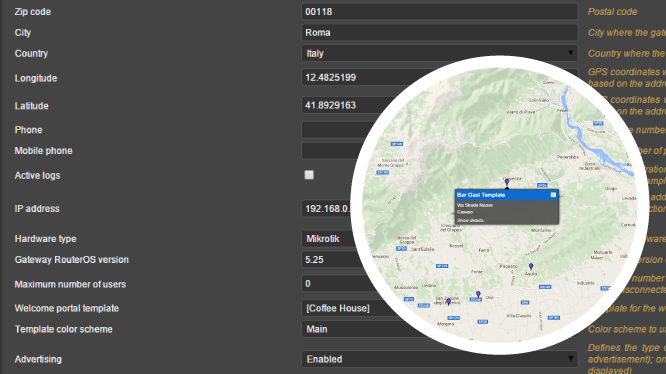 Κάθε πινέζα (pin) στο χάρτη, αντιστοιχεί σε ένα τοπικό κόμβο της υπηρεσίας. Ο Χάρτης ανανεώνεται συνεχώς και είναι βασισμένος στο Google API. Απλά συναρπαστικό και αξιόπιστο.Η λίστα συνδεδεμένων συσκευών, εμφανίζει το σύνολο των συσκευών που είναι συνδεδεμένες στο hotspot την τρέχουσα στιγμή. Η επιλογή αυτή είναι διαθέσιμη στο μενού system της πλατφόρμας.